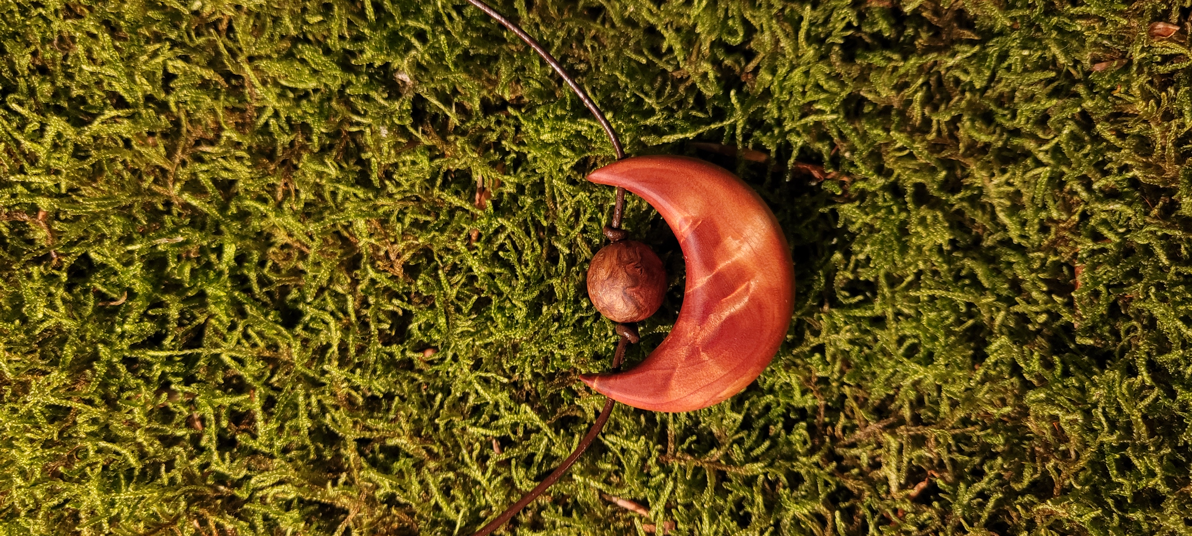 Halbmond aus einer Weiden-Baumperle und Kugel aus einer Ahorn-Baumperle